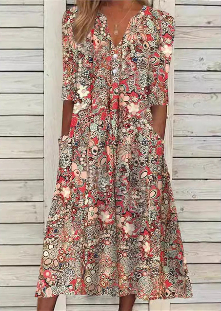 The Almira Floral Midi Dress brings together comfort and charm in a silhouette that’s as easy as it is flattering. With its breezy sleeves, soft waist shape, and cheerful floral print, it’s your go-to for everyday beauty casual or dressed up.